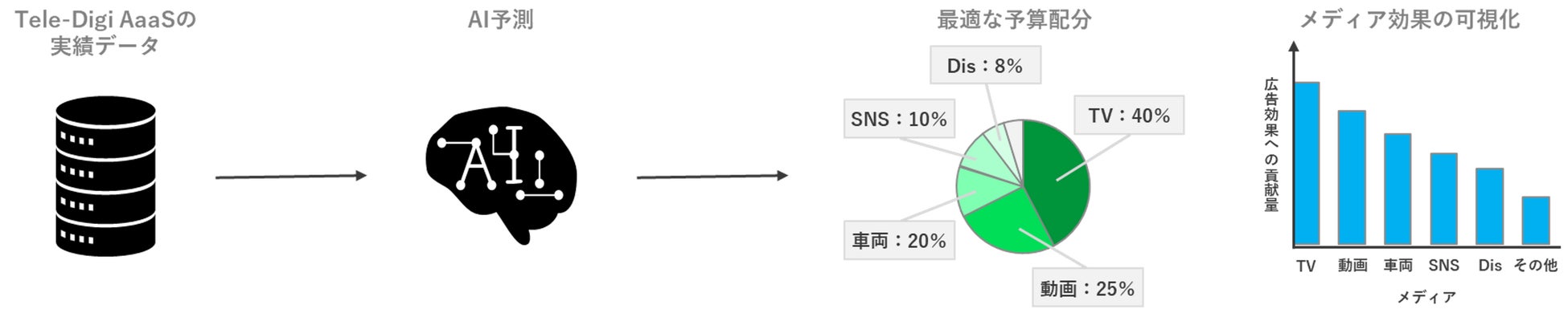 Tele-Digi AaaSに蓄積された各広告主の出稿実績データに基づき、AIで広告主ごとに最適なメディアシミュレーションを提供