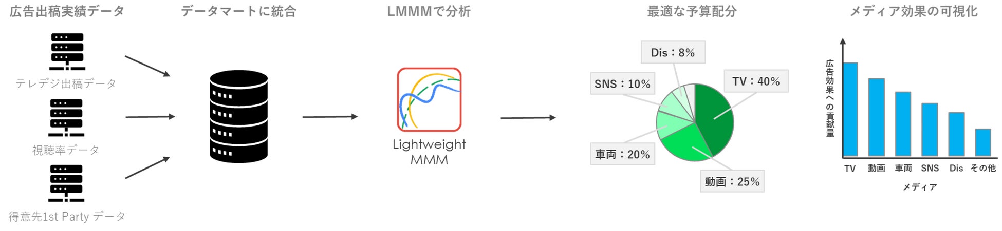 (※2)MMMは「マーケティング施策が売上・販売数量・CVなどのマーケティングのゴールに対して、何がどのようにどれくらい影響しているのか?」を数式化し、施策効果の可視化・診断・効果予測を可能にする分析アプローチです。