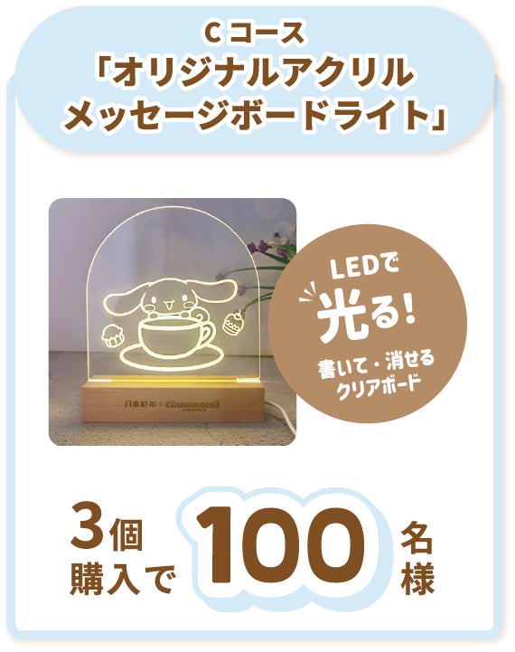 Cコース:LEDで光る!書いて消せる「シナモロールとティーパーティー」オリジナルアクリルメッセージボードライト
