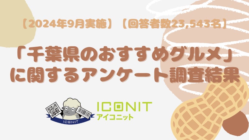株式会社メディアシークが提供する累計3,600万DL超スマートフォンアプリ「QR/バーコードリーダー・アイコニット」内で、アプリユーザーを対象に毎日実施しているアンケート「アイコニット・リサーチ」において、「千葉県のおすすめグルメ」に関するアンケートを23,543名に対して2024年9月26日に実施いたしました。