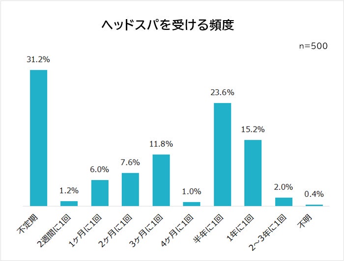 ヘッドスパを受ける頻度は「不定期(31.2%)」と回答した人が最も多くなっています。