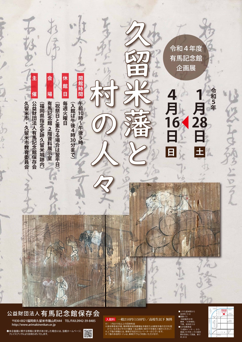 【福岡県久留米市】有馬記念館企画展「久留米藩と村の人々」を開催。