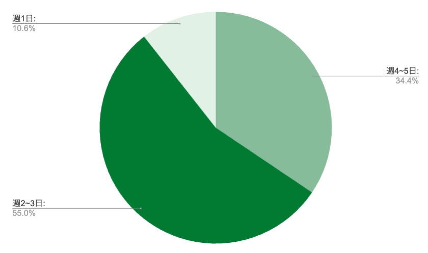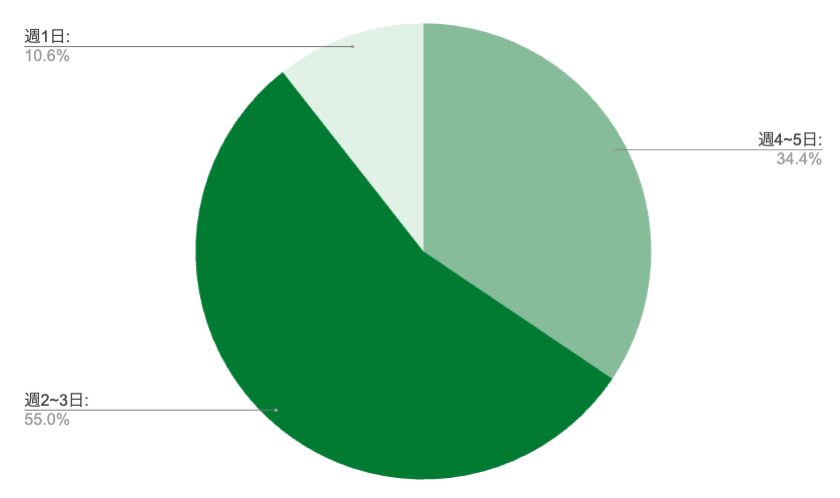 週23日が55.0%と過半数を占め、週45日の34.4%を大きく上回っています。事業企画は戦略立案やプロジェクト推進が中心で、常駐する必要が少ないため、柔軟な稼働が可能です。経営層との定期ミーティングや重要な意思決定の場面で参画し、その間に戦略を練るというスタイルが主流となっています。週1日も10.6%あり、スポット的な戦略アドバイザーとしての需要もあります。高年収でありながら柔軟な働き方を実現できる、魅力的な職種です。
