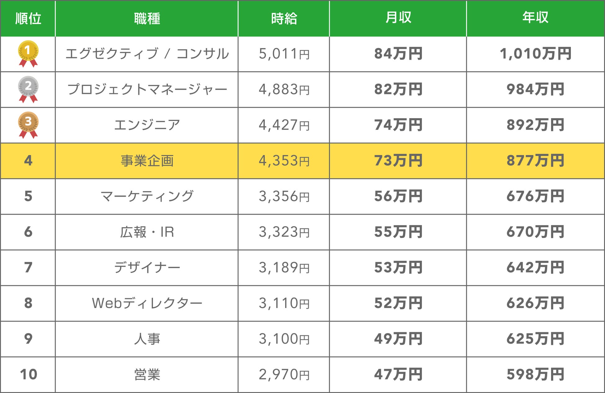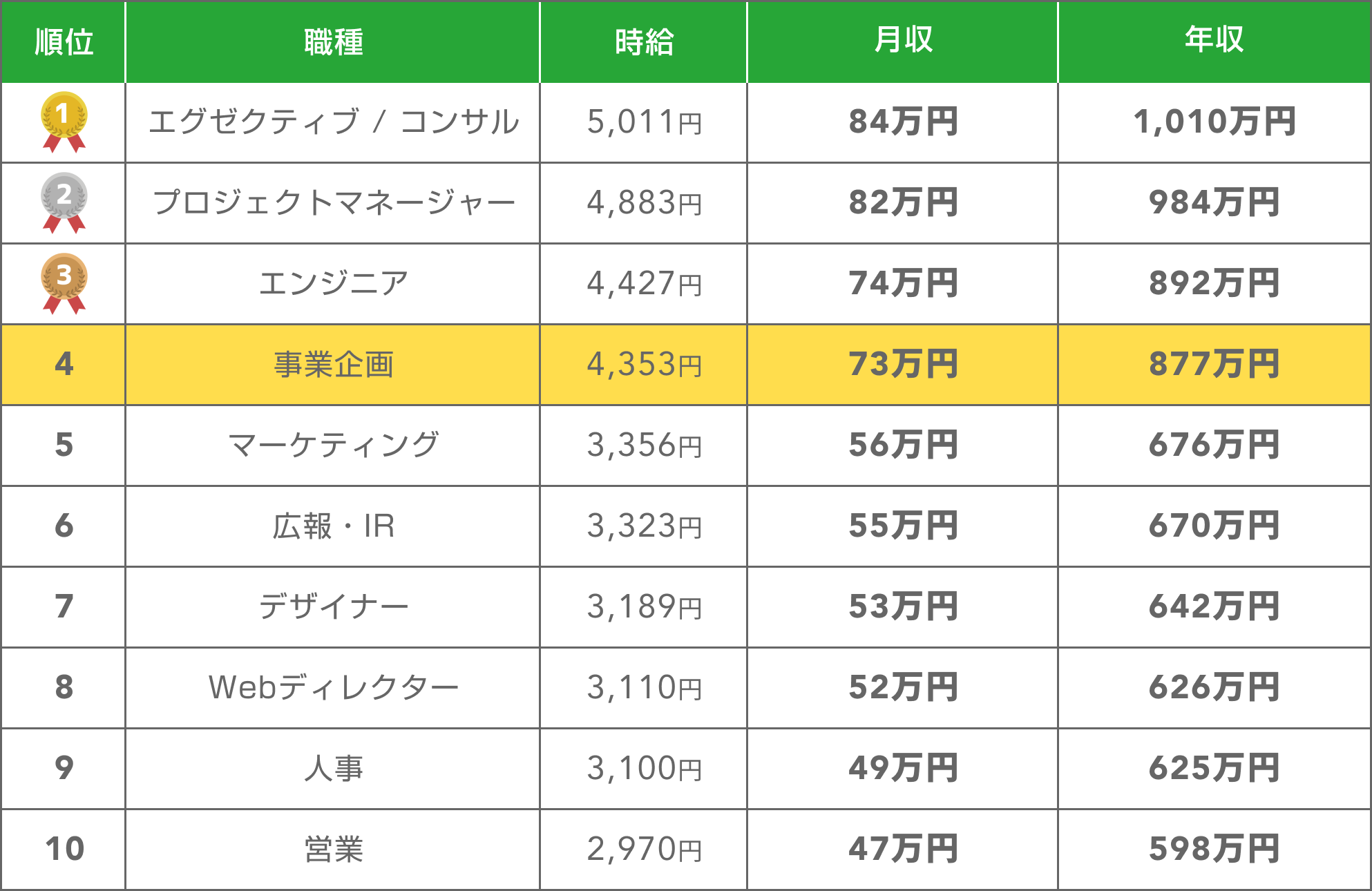 平均年収877万円(職種別年収ランキングトップ10中、4位)