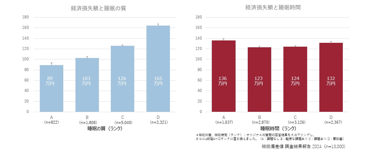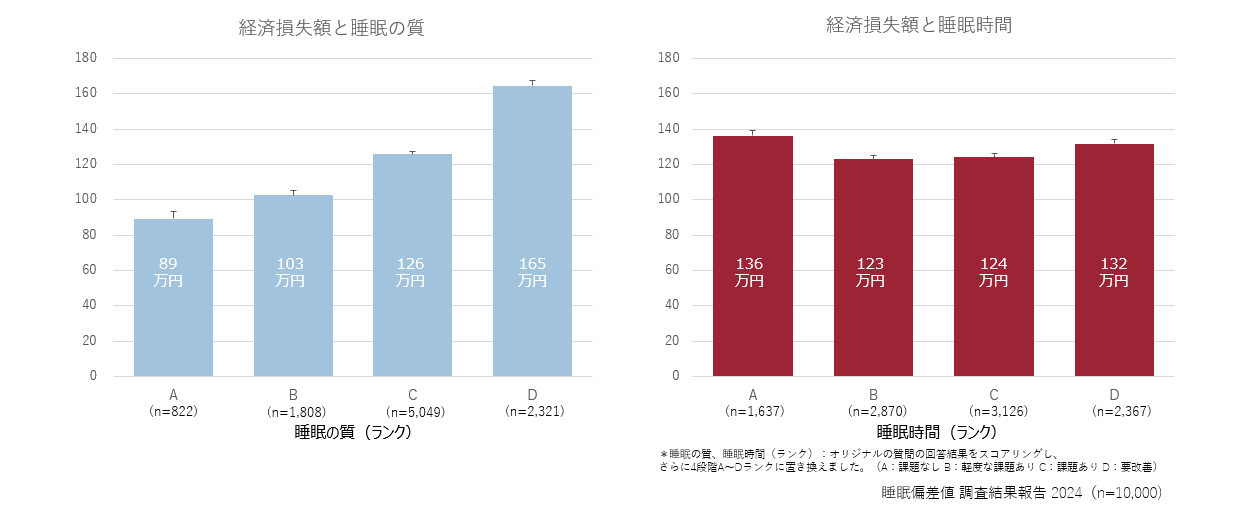 同様に経済損失額についても、睡眠の質は相関が見られる一方、睡眠時間には相関が見られませんでした。