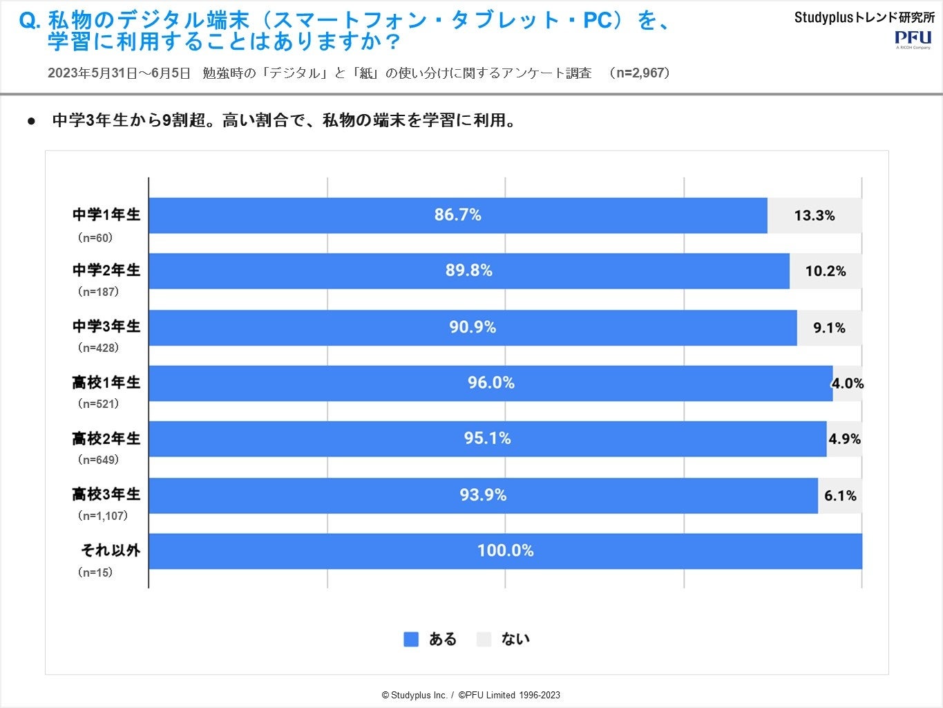 中高生の紙・デジタル併用の学習スタイルが定着、板書やノートの写真撮影・ “スクショ” 活用で端末に学習内容を保存する傾向も~勉強時の「デジタル」「紙」の使い分けについて、中高生2,967名を調査~