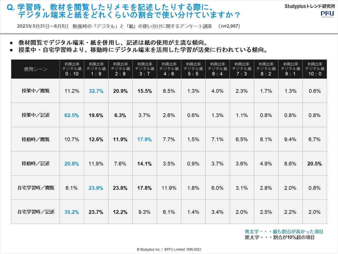 『勉強時の「デジタル」と「紙」の使い分けに関するアンケート調査』トピックス