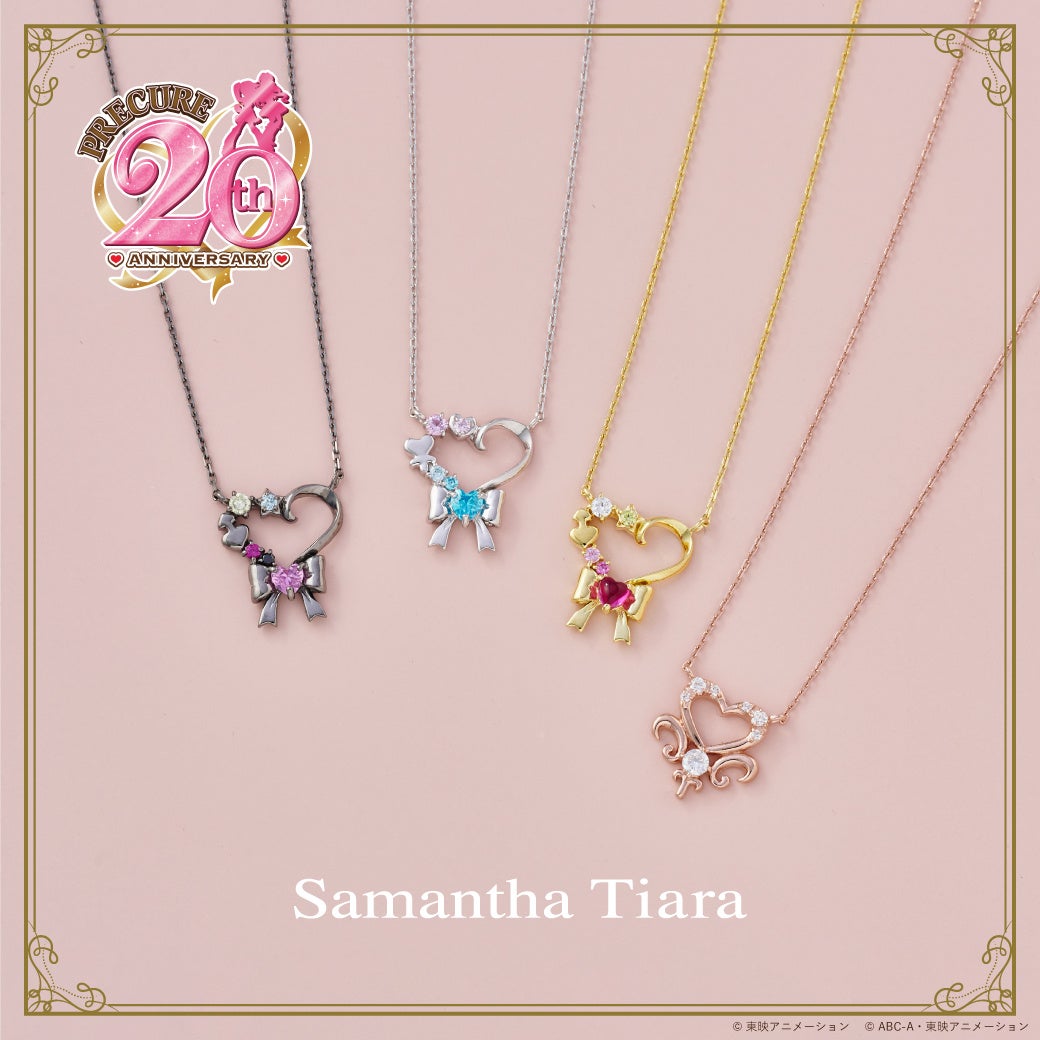 サマンサティアラからは、キュアブラック、キュアホワイト、シャイニールミナス、メップル、ミップル、ポルンをイメージしたネックレスや、ピンキーリング/イヤーカフ、作品のエンブレムをモチーフにしたネックレスなど全7アイテムがラインナップ。