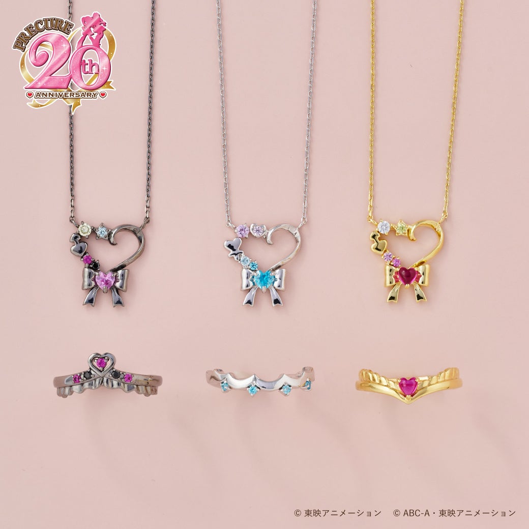 キュアブラック、キュアホワイト、シャイニールミナスをイメージしたアイテムや、作品のエンブレムをモチーフにしたネックレスなど全7アイテムがラインナップ。