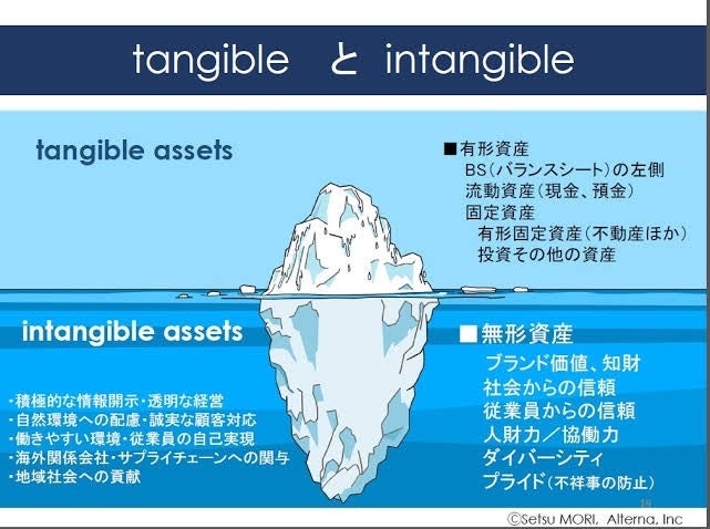 今までの世界では有形資産は重視され、有形資産を有する会社に対して期待や安心が寄せられる傾向がありましたが、近年その考え方は変わりつつあります。