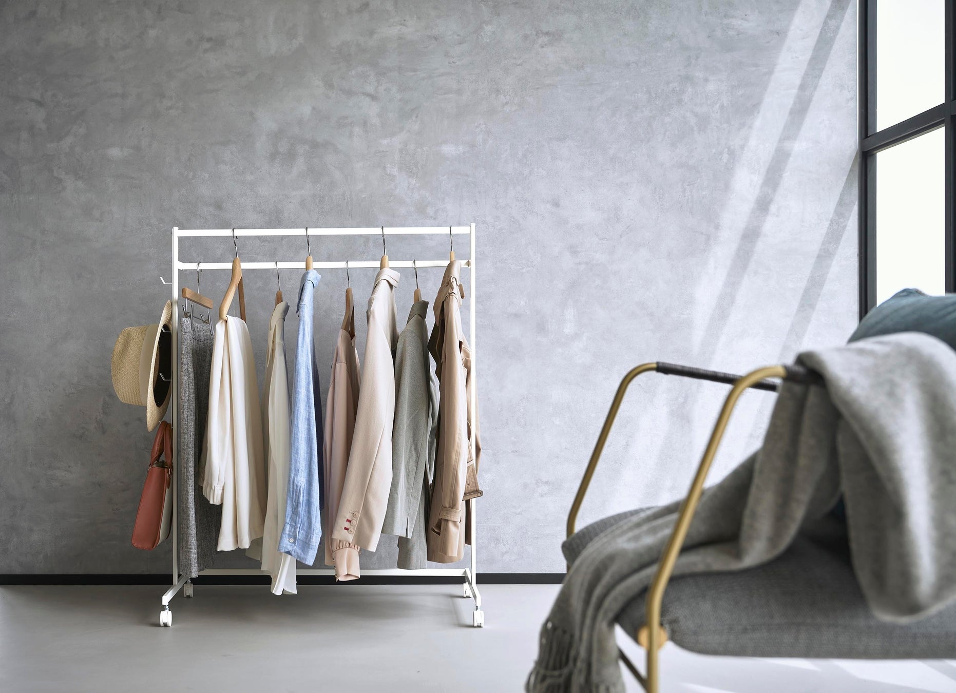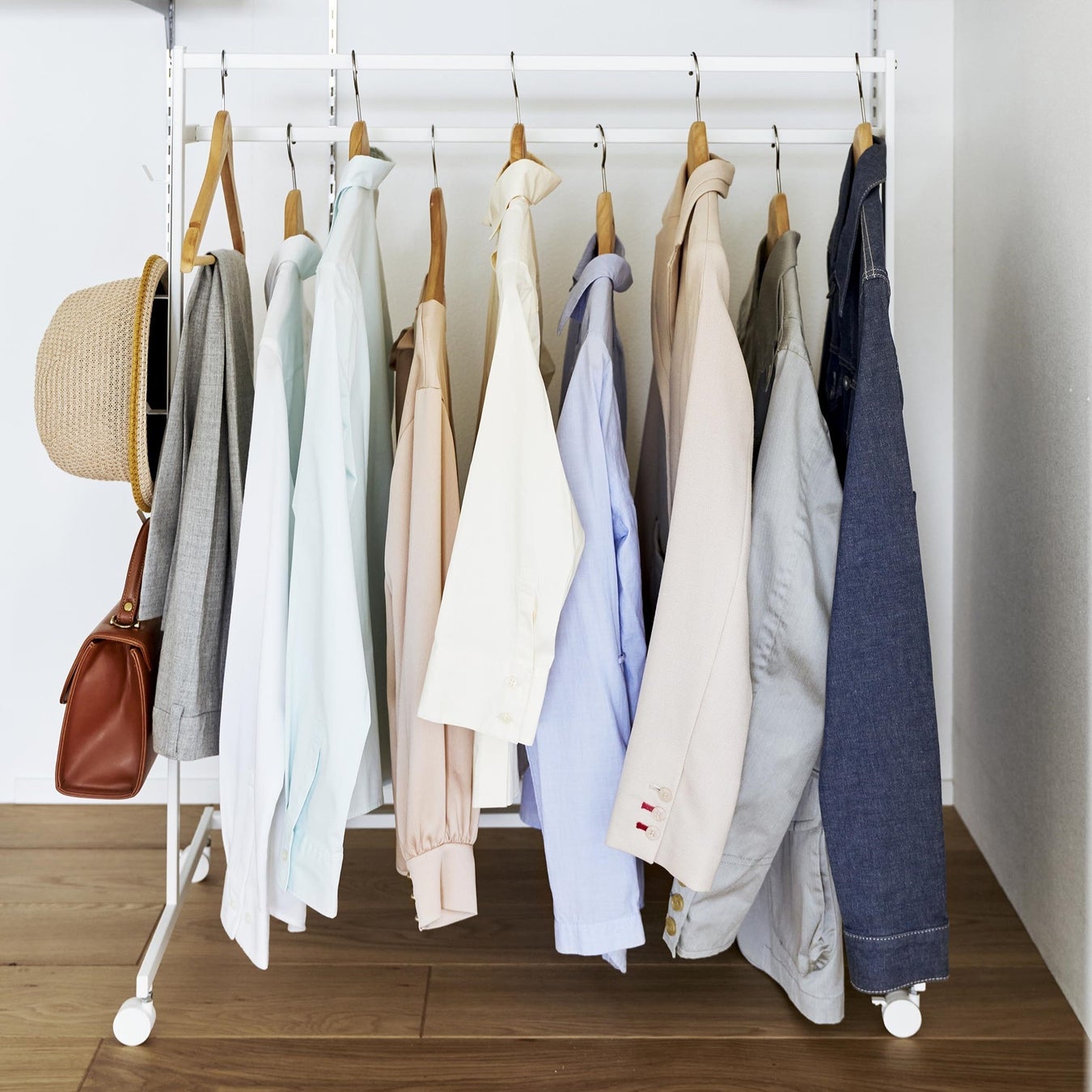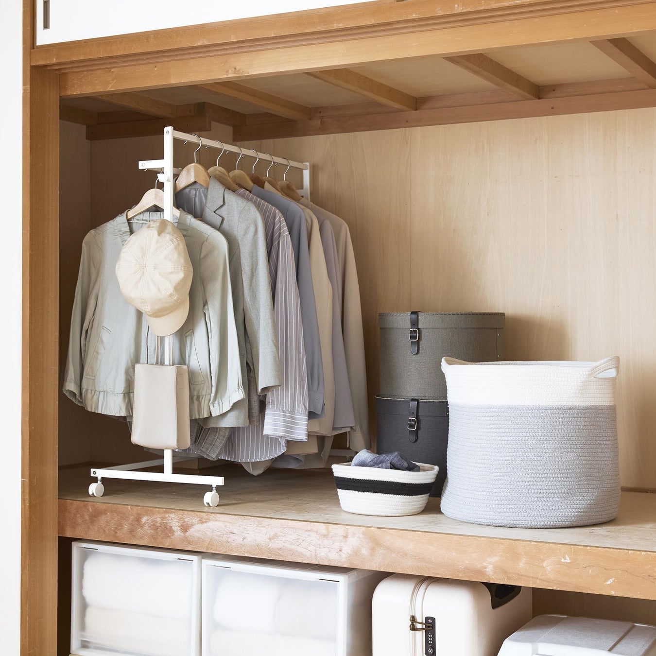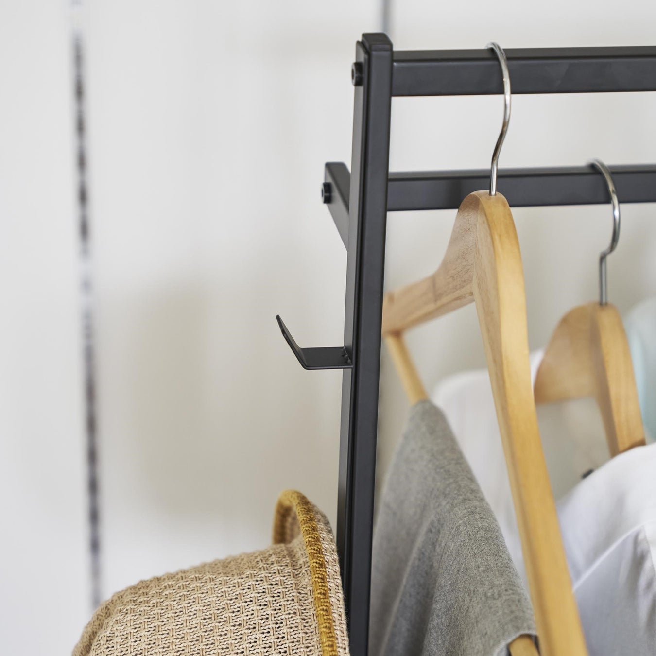 サイドの4連フックは左右どちらにも取り付け可能、帽子やミニバッグの収納に便利です。上段、下段に服を掛ければ、服の見分けがつきやすく支度もスムーズ。