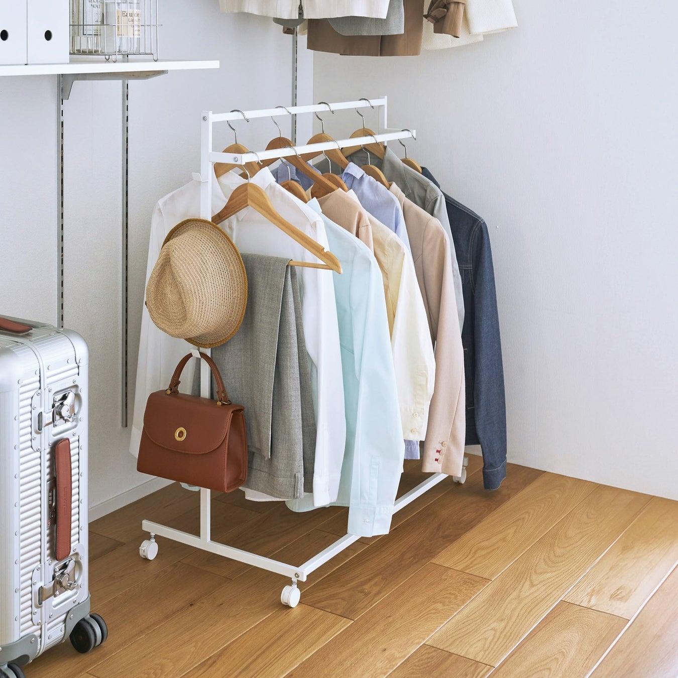 2段のバーで段違いに位置をずらして服を掛けることができる「収納力アップハンガーラック タワー 2段」発売