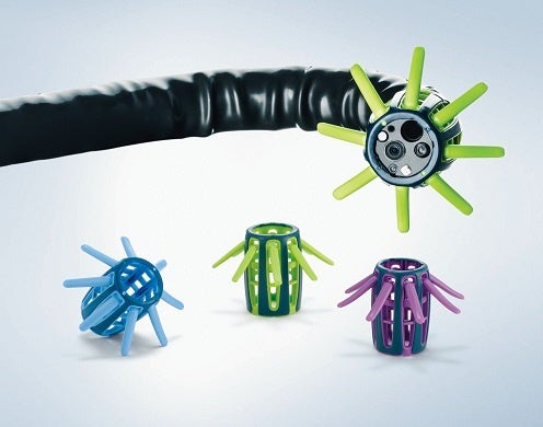 今回発売する「ENDOCUFF VISION」は、元々2020年にオリンパスが買収契約を締結した英国医療機器メーカーArc Medical Design社により開発された製品です。円周上にフレキシブルアームを備えた独自のデザインにより、フレキシブルアームが大腸のひだを押さえて平らにすることで、大腸内視鏡検査時において従来は観察の難易度が高かった箇所の視認性向上に貢献するように設計されています。本製品の導入により、安定した大腸内視鏡検査をサポートし、より効率的で質の高い手技に貢献します。