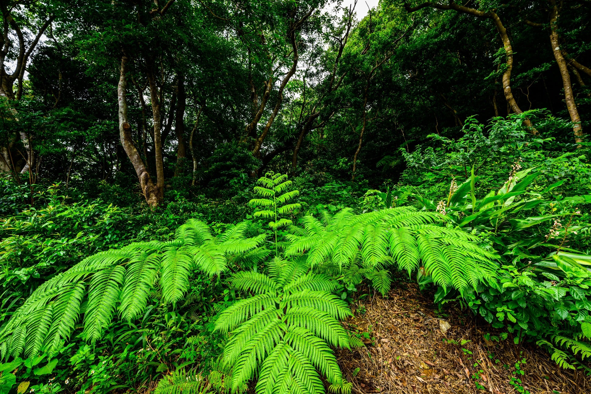 「やんばる」と呼ばれる沖縄県北部地域は日本最大級の亜熱帯照葉樹林がひろがる自然の宝庫。2021年にはヤンバルクイナをはじめとした固有性の高い生態系を有し、生物の多様性が認められることが評価され、鹿児島県の奄美大島や徳之島、沖縄県の西表島(いりおもてじま)とともに、やんばるエリアである国頭(くにがみ)村、大宜味(おおぎみ)村、東(ひがし)村の3村に属する広大な森林地帯が世界自然遺産に登録されました。やんばるの森は北緯27度付近に位置。同緯度にはサハラ砂漠やインド等の乾燥地帯が多いのに対し、やんばるエリアは海流や季節風の影響で雨量が多いため、豊かな自然環境が存在する稀有な場所です。琉球列島という地形的な独自性もあいまって、世界的に見ても珍しい自然、動植物を有しており、「奇跡の森」とも呼ばれています。