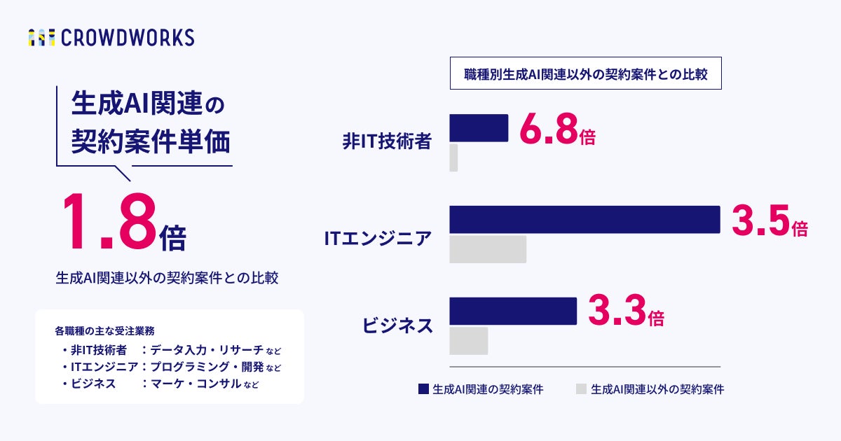 生成AI関連以外の仕事比で約2倍と高単価 職種別ではITエンジニアが3.5倍に