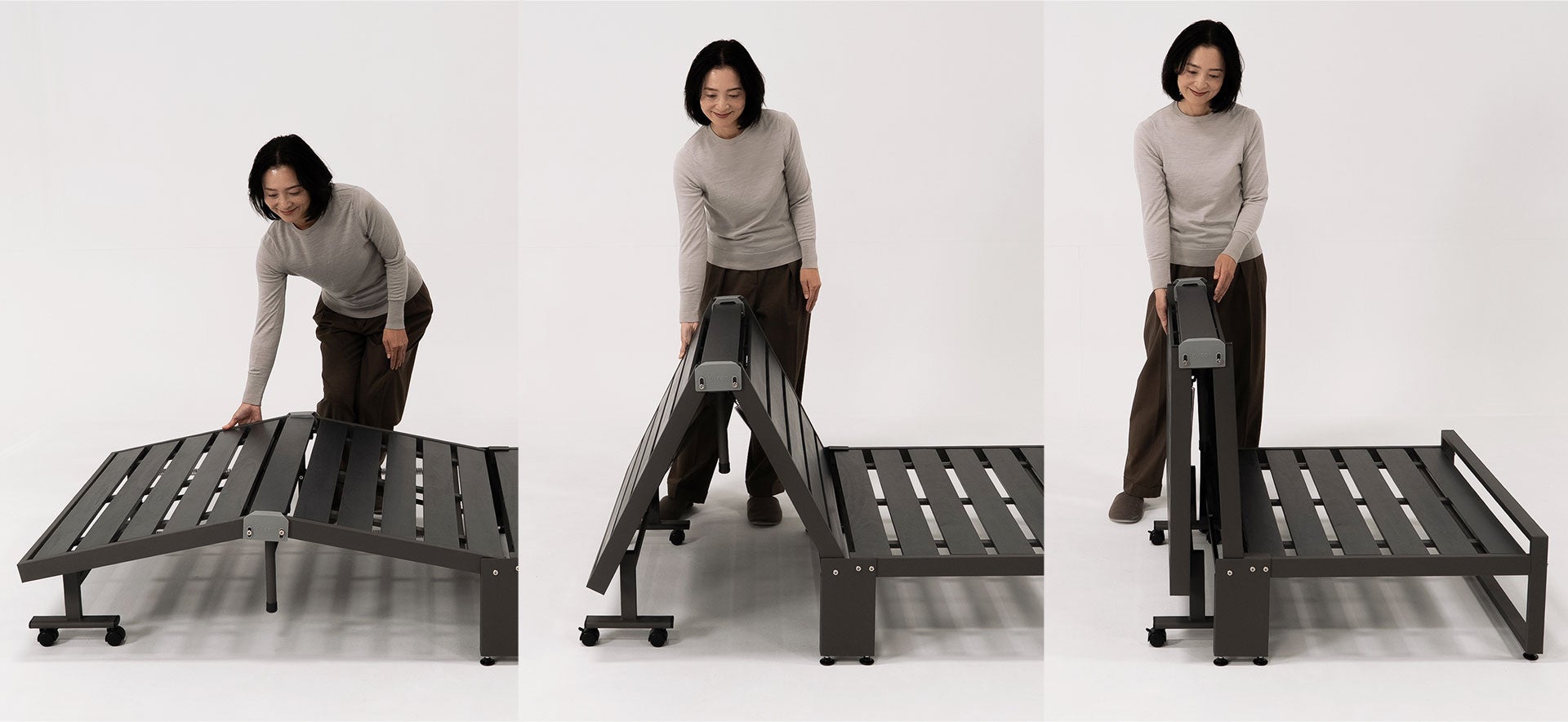 業界初(※)の三つ折りマットレス専用設計により、独自のトランスフォーム構造を実現。毎日の操作も苦にならない折りたたみやすさで、暮らしを美しく、便利に切り替えます。