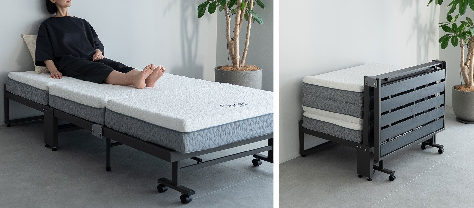 TATAMUから、三つ折りマットレス専用折りたたみベッド登場。