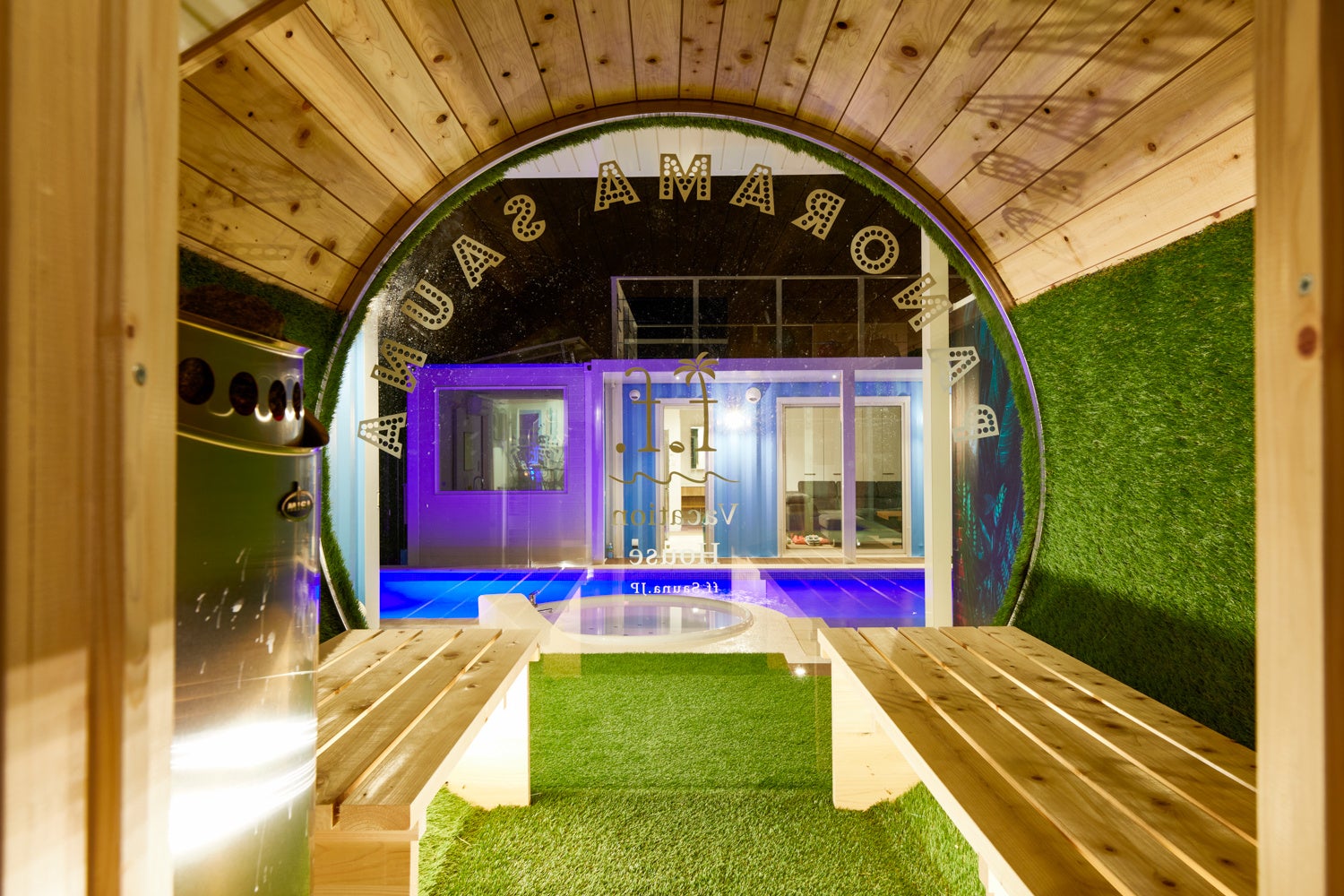 客室にはジャグジー付プライベートプール・サウナ・ミュージックルームを配置。