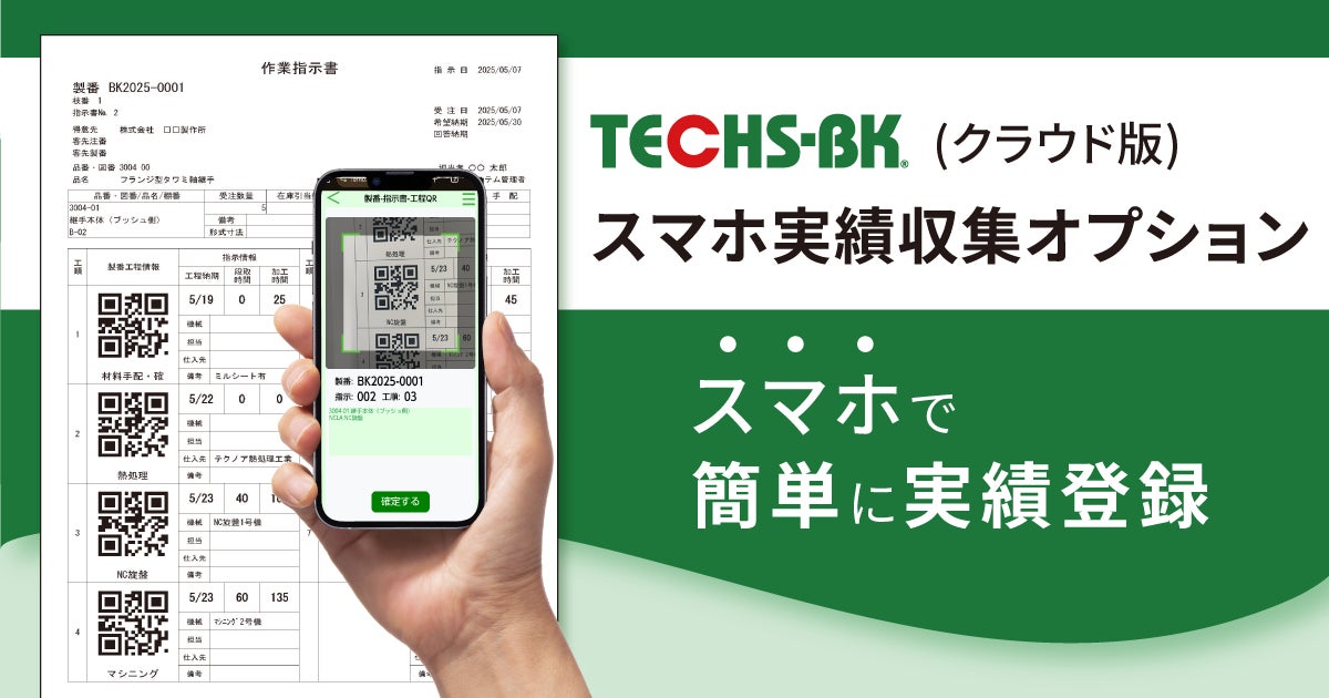 株式会社テクノア(本社:岐阜県岐阜市、代表取締役:山﨑 耕治)は、多品種少量型の部品加工業様向け生産管理システム『TECHS-BK』(クラウド版)の専用オプションとして、新たに『スマホ実績収集オプション』を開発し、2025年6月27日(金)より販売開始いたします。