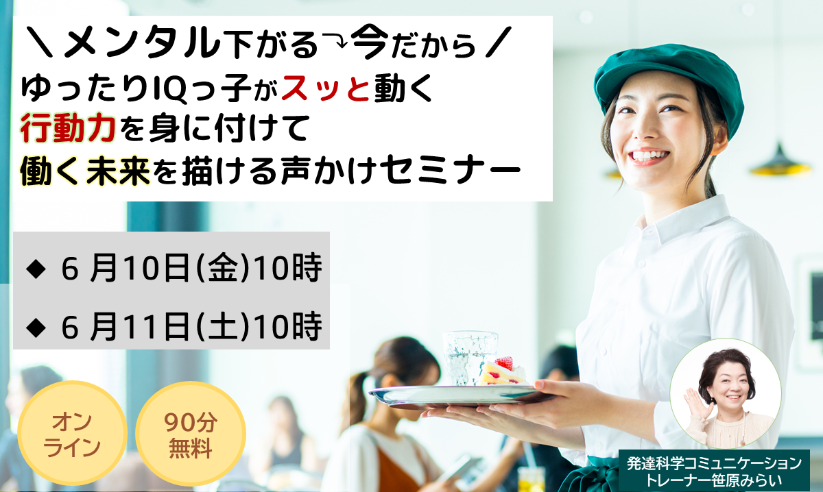 「\メンタル下がる⤵今だから/ゆったりIQっ子がスッと動く行動力を身に付けて働く未来を描ける声かけセミナー」 』募集を開始