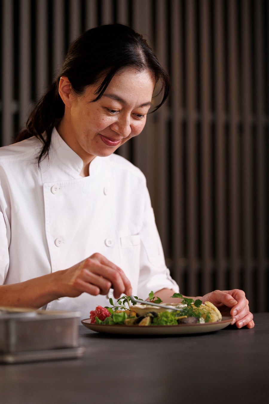 お客様が食べるものは、責任を持って選びます。Hyssopなりの表現で、生産者さんの気持ちを代弁できるようなプレゼンテーションと空間で、食事を楽しんでいただく。 GOOD NATURE STATIONのコンセプトでもある「信じられるものだけを、美味しく、楽しく。人も地球も元気にする“GOOD NATURE”なモノ・コトが集まる場所」を体現できるレストランです。どのカテゴリーにも、1~3種はヴィーガン対応メニューを用意し、ヴィーガンの方も、そうでない方も同じテーブルを囲えるようにしており、食の多様性に可能な限り対応していきます。