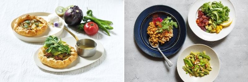 Hyssopのシグネチャーディッシュとして、新たに「ファーマーズパイ」が登場。バターや牛乳などの動物性の食材を使用せずに仕上げたサクサクのパイ生地に、季節の野菜や果物をトッピングし、こんがりと焼き上げました。ミール系のパイには、白味噌ベースの生地に、季節の野菜と、食べ応えのあるプラントベースミートをトッピング。お好みでヴィーガンチーズソースをかけてお召し上がりいただきます。季節の果物をのせた、食後のデザートとしても楽しんでいただける甘いパイと2種類をご用意しました。