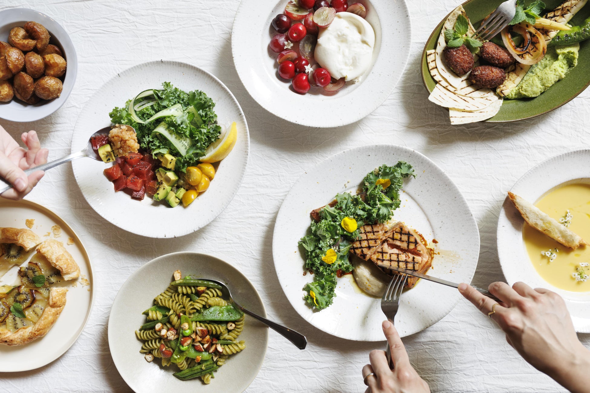 ランチで提供する「Hyssop’s Choice Set Meal」は、季節ごとに異なる6種のおかず・メイン・スープ・おにぎり・日本茶が楽しめるセット。何年も何百年も、様々な人の手を介して受け継がれてきた京都の食文化からインスパイアされて作ったランチタイム限定のセットミールです。