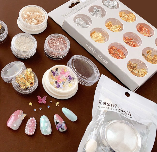 ネイルアートやレジンアクセサリーに使えるパーツ・ラメやホログラム・チップやパウダー等も多数ご用意。