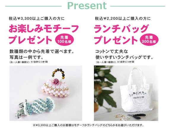 ※税込み¥3,300以上ご購入のお客様は、モチーフかランチバッグのどちらかをお選びいただけます