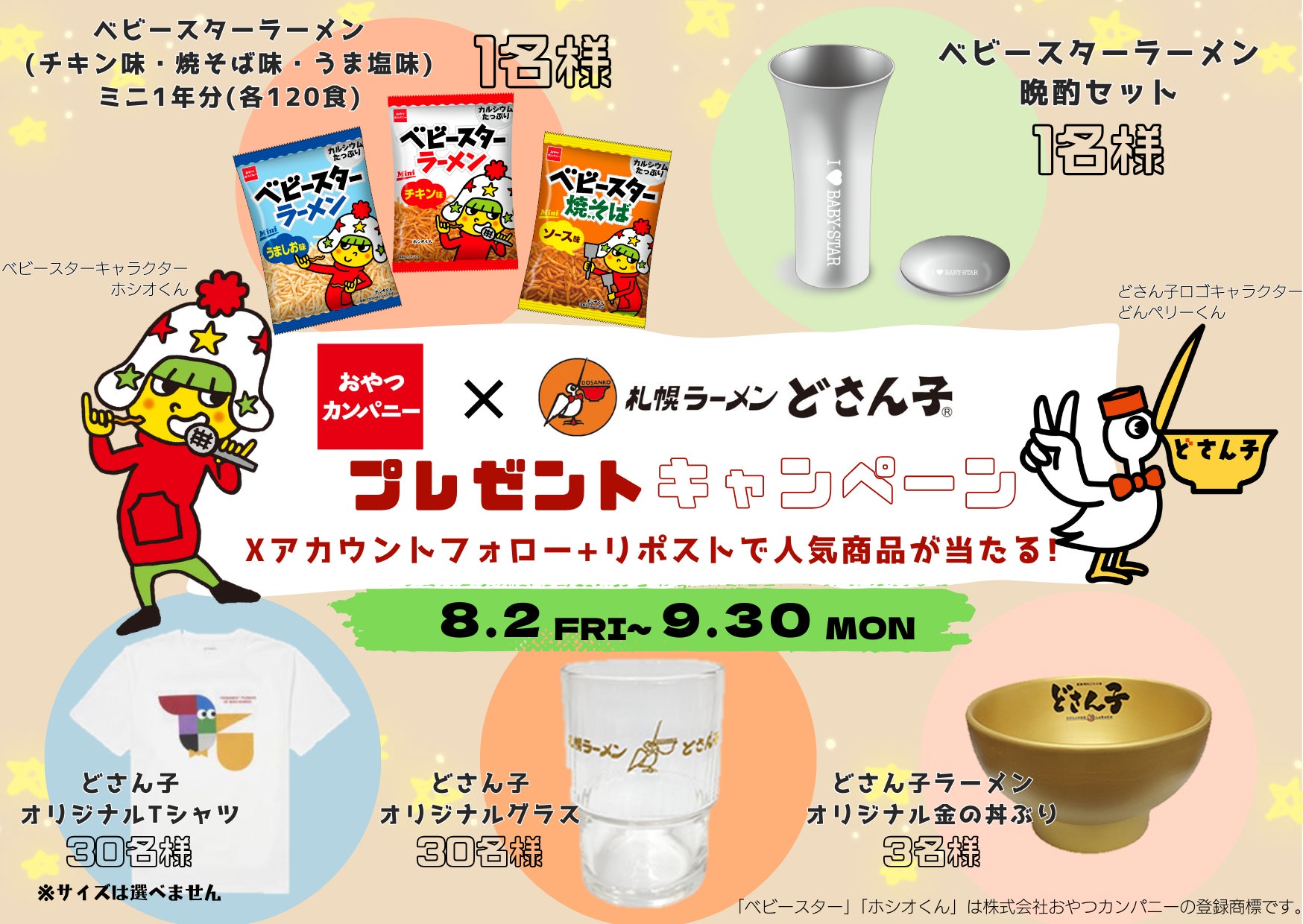 「札幌ラーメンどさん子」×「おやつカンパニー」がコラボ!8月2日~無料サンプリング配布&素敵な商品が当たるXキャンペーンも実施致します!