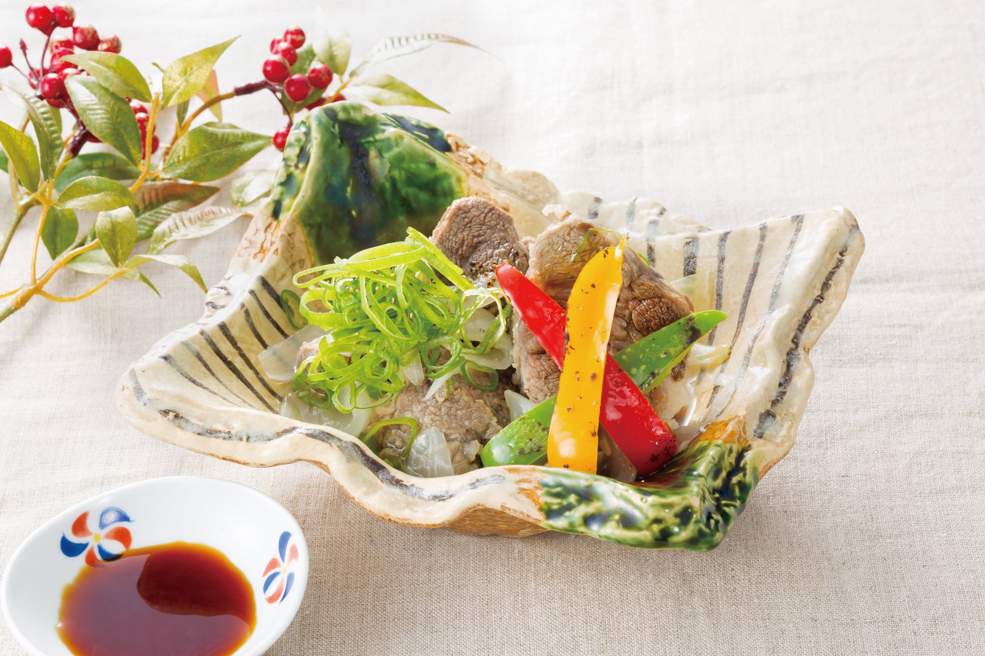 使用食材:福島県飯舘村 黒毛和牛、福島県飯舘村 パプリカ