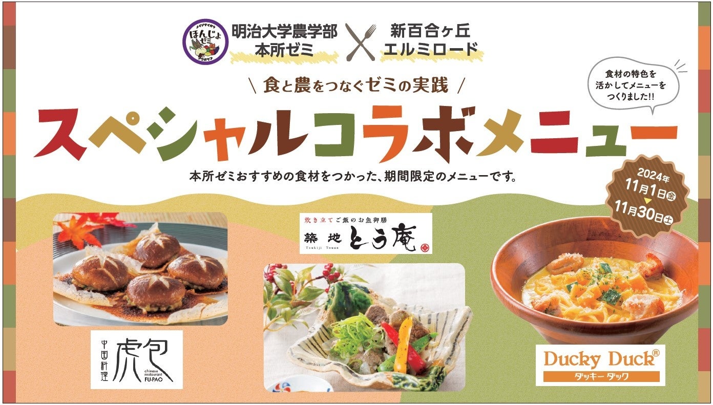 株式会社小田急SCディベロップメント(本社:東京都新宿区 取締役社長:細谷 和一郎)が運営する川崎市麻生区の商業施設「新百合ヶ丘エルミロード」は、「食と農-食べる人とつくる人、都市と農村をどうつなぐか」を研究テーマとする明治大学農学部・本所ゼミとの産学連携の取り組みを、2024年11月1日(金)~30日(土)に実施します。