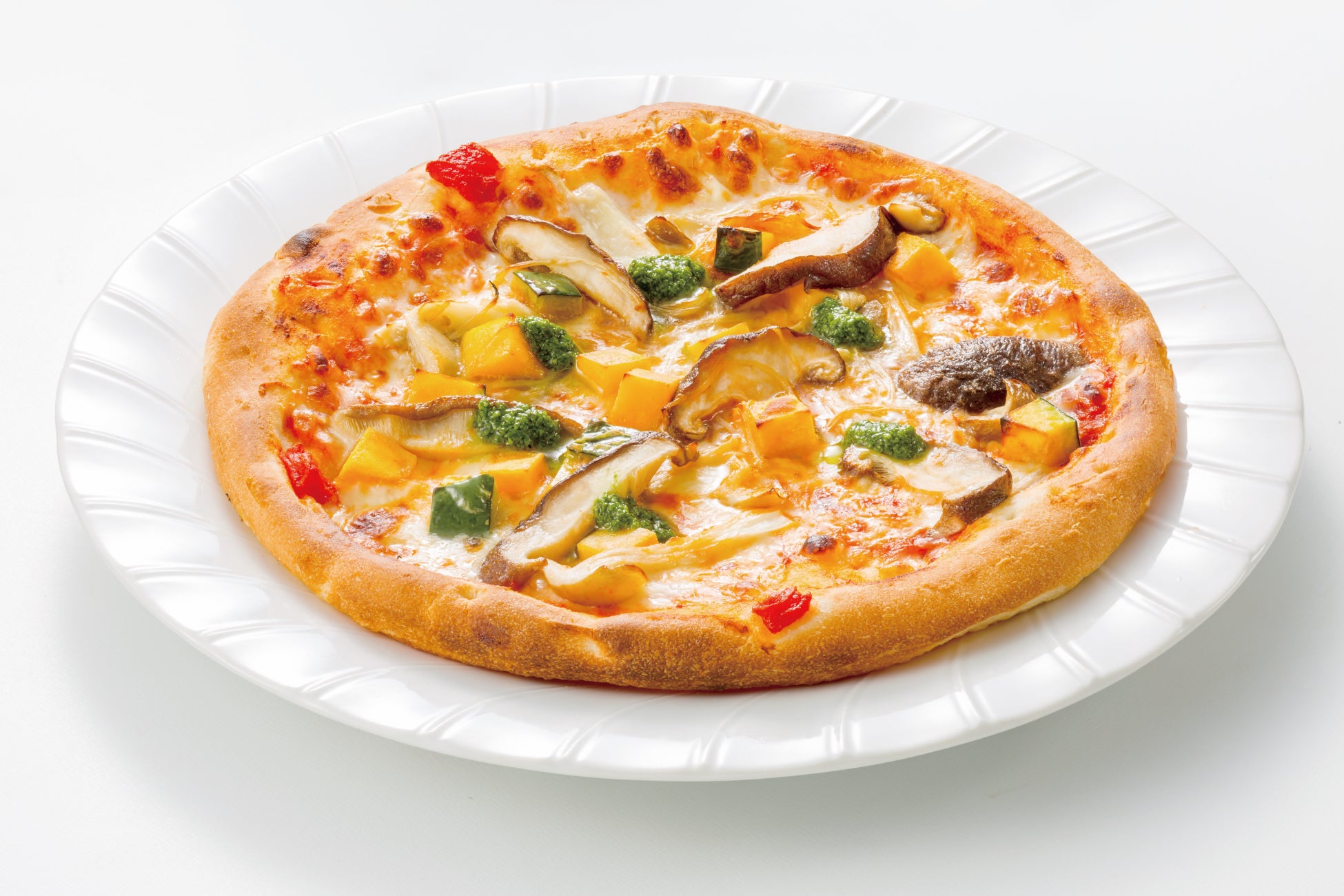 かぼちゃのほくほく感と椎茸の食感を楽しめる、秋の味覚を存分に味わうマルゲリータ!