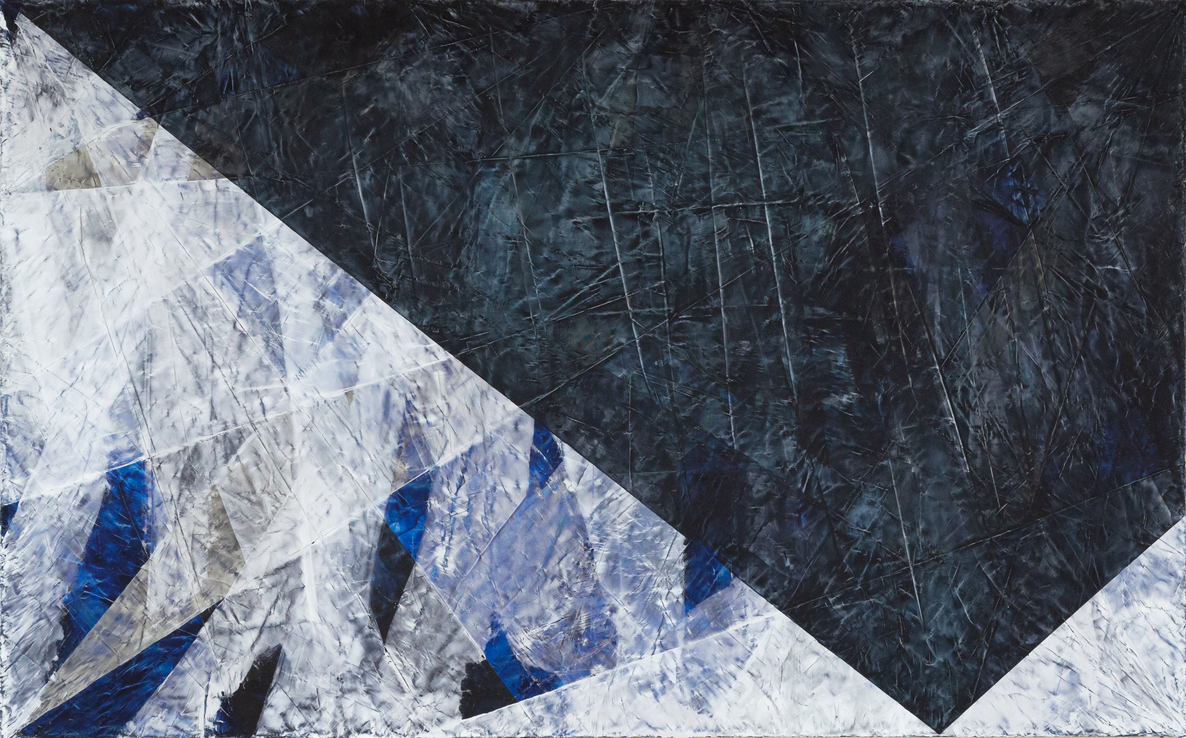 前田はこれまで、多角形の最小単位である「三角形」をモチーフに、ペインティングナイフのみを用い、油絵具を幾十層にも重ねることで、時間と痕跡を刻むように絵画を制作してきました。