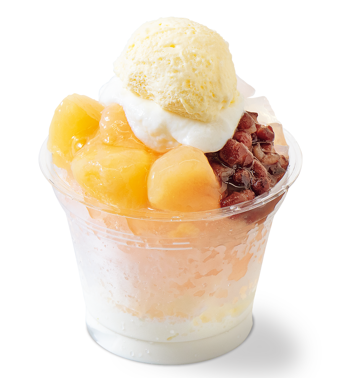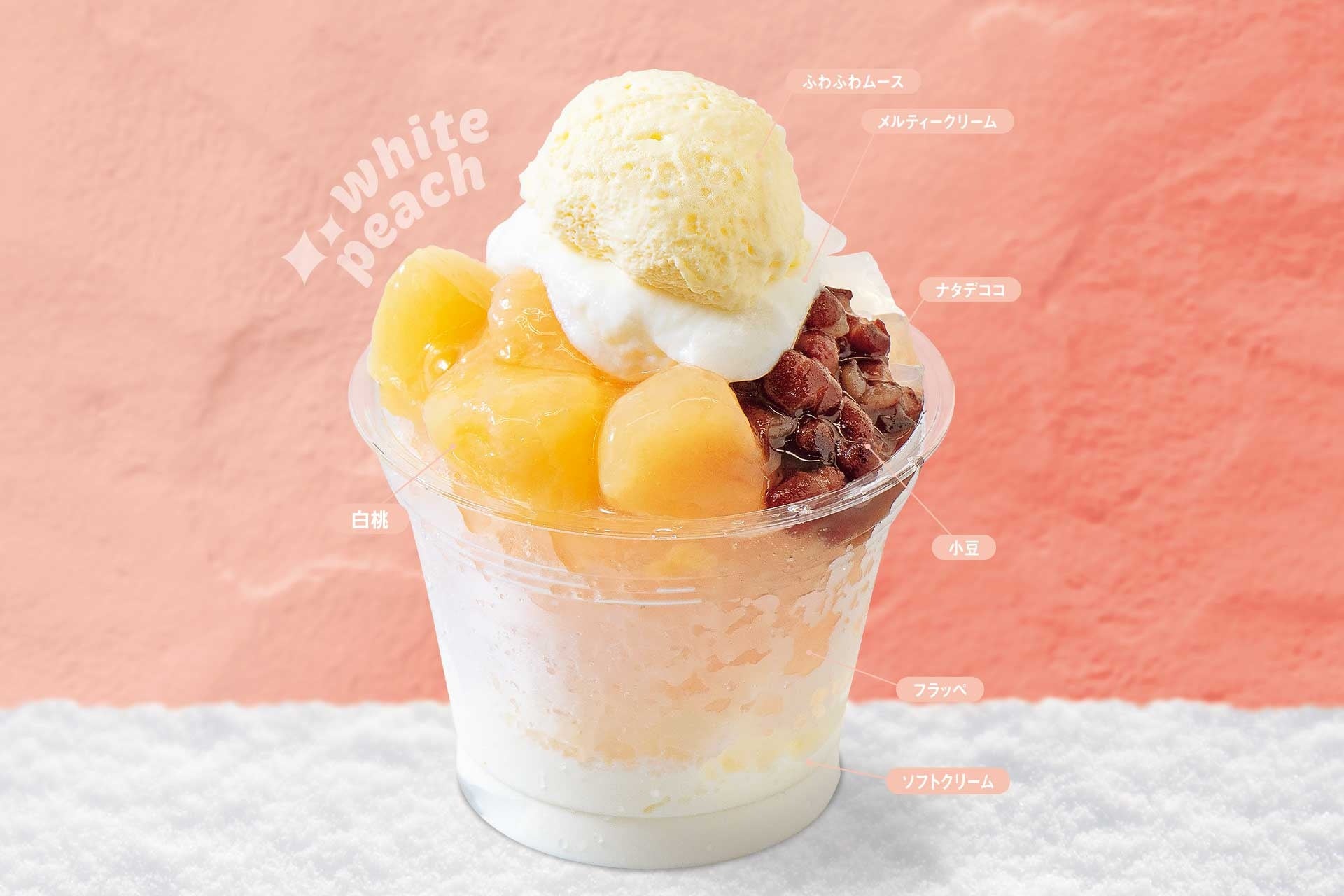 ふわふわムース、メルティークリーム、ナタデココ、白桃、小豆、フラッペ、ソフトクリーム