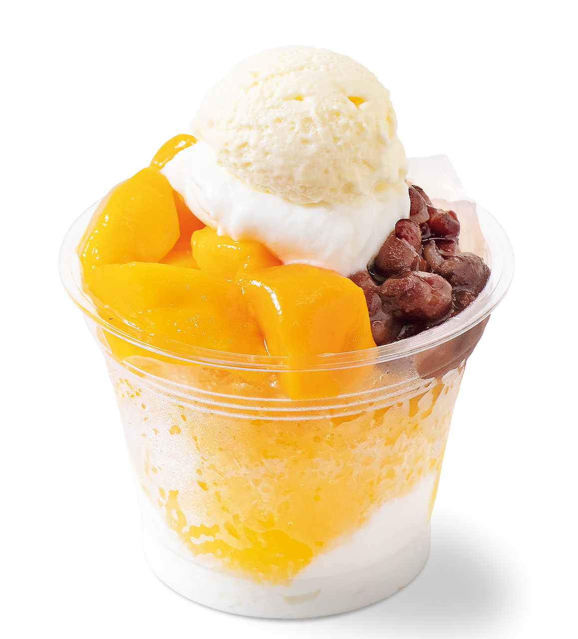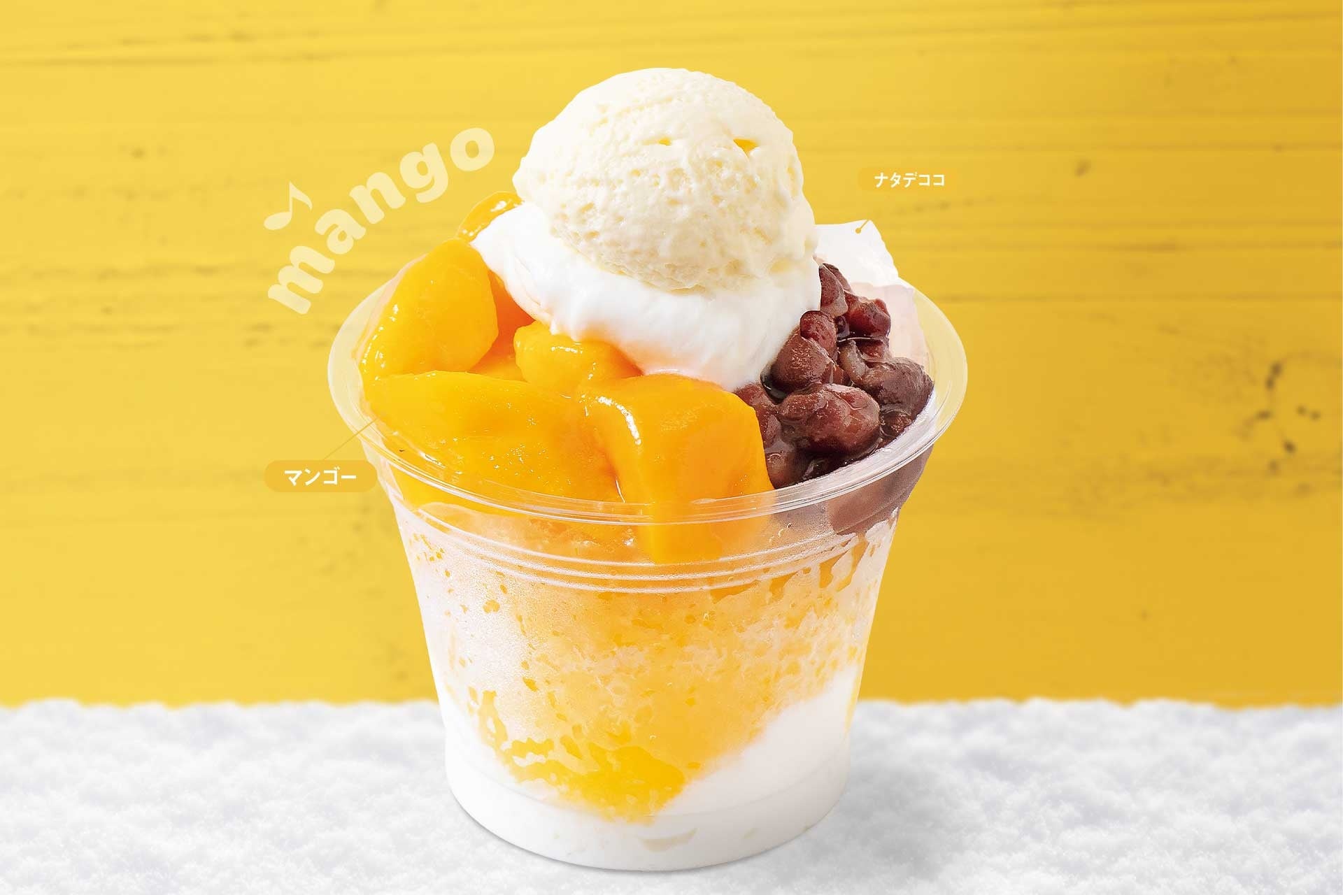 ふわふわムース、メルティ―クリーム、ナタデココ、マンゴー、小豆、フラッペ、ソフトクリーム