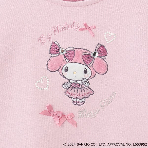 オリジナルアートをアップリケ刺繍したトレーナー。マイメロディのぬいぐるみの様な触り心地の生地を使用したアップリケで、肩のチュールフリルは内側にハート柄のチュールを重ねているのがポイント♪