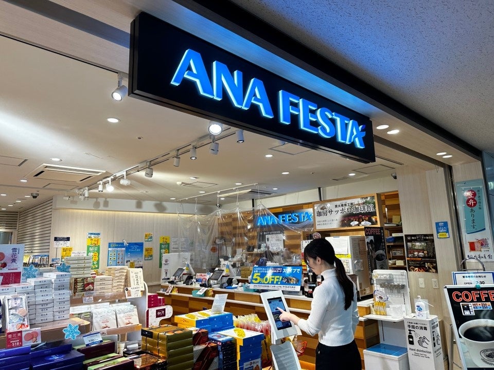 ANA FESTA(11空港20店舗) ・新千歳空港:千歳ロビー店、千歳7番ゲート店、千歳9番ゲート店 ・仙台空港:仙台ゲート店 ・羽田空港:羽田B1フロアギフト店(ANA FESTA GO)、羽田到着ロビーギフトショップ、羽田53番ゲートギフト店、羽田61番ゲート店、羽田65番ゲート店 ・広島空港:広島ゲート店 ・松山空港:松山ゲート店 ・山口宇部空港:宇部ロビー店 ・福岡空港:福岡国内ロビー店、福岡7番ゲート店、福岡8番ゲート店 ・長崎空港:長崎ゲート店 ・鹿児島空港:鹿児島2階ロビー店 ・那覇空港:那覇ロビー1号店、那覇ゲート店 ・石垣空港:石垣ゲート店 ※営業時間は、航空機の運航状況により、変更する場合があります。 詳しくは、以下のURLから店舗情報をご確認ください。 https://www.anafesta.com/shops/ |