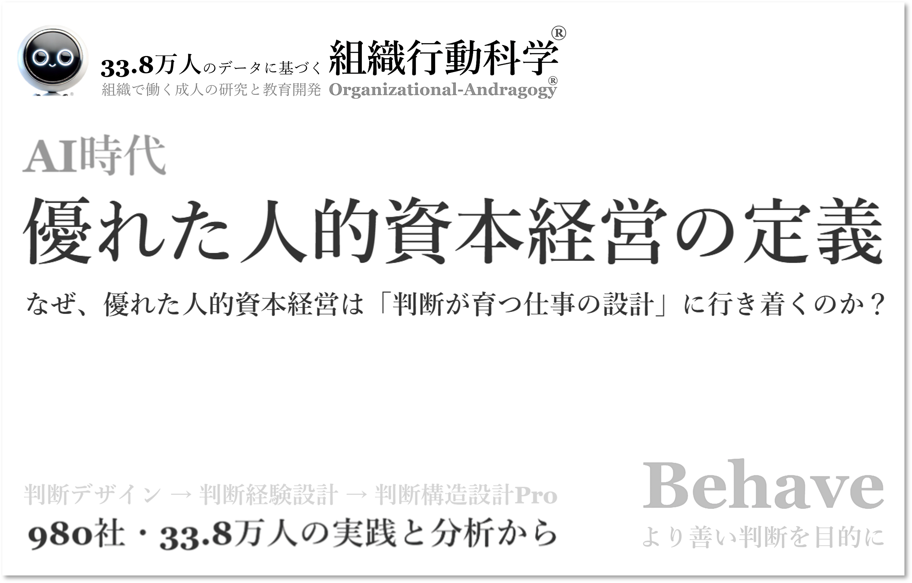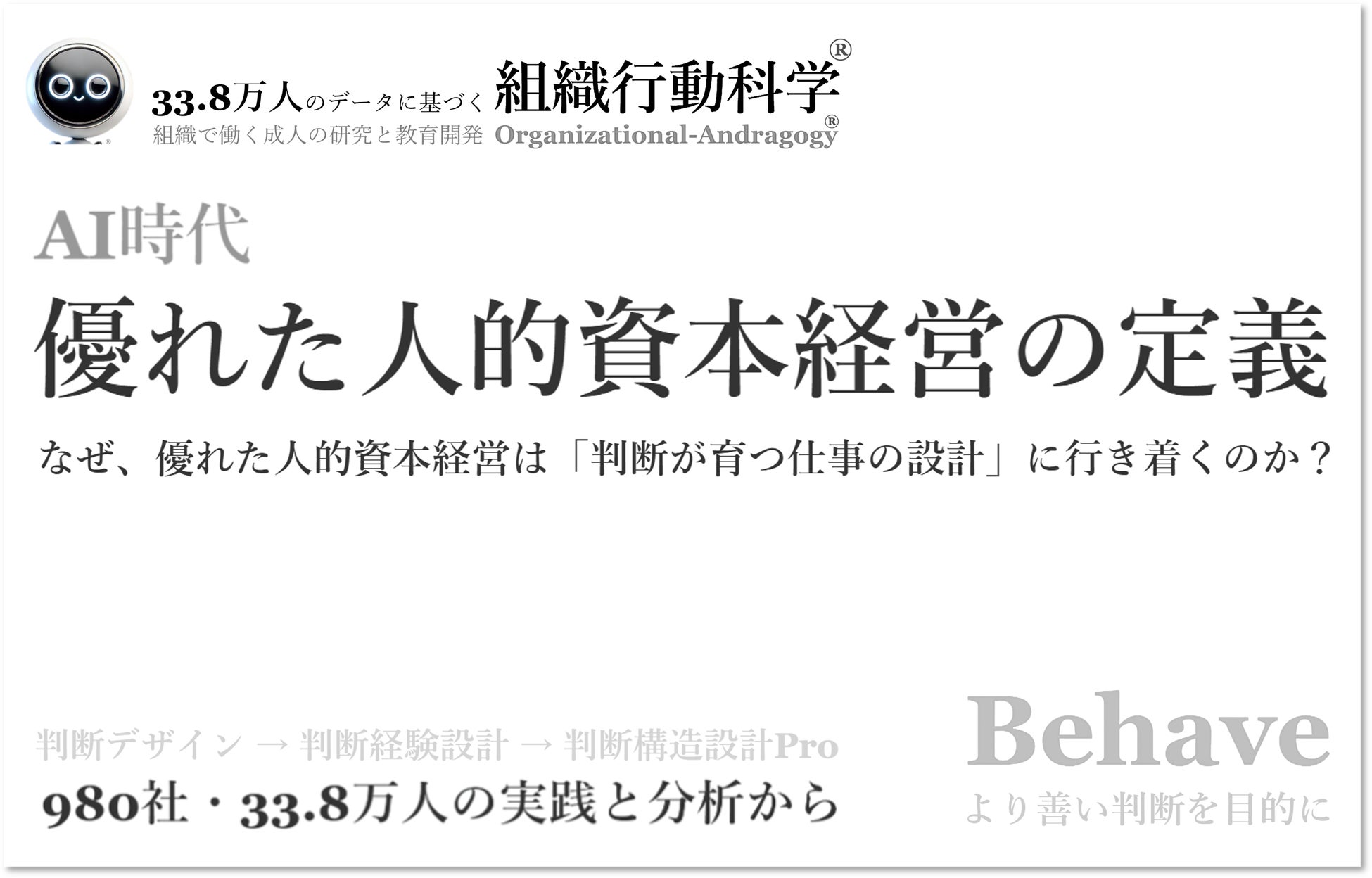 「優れた人的資本経営の定義」を全文公開。33.8万人・980社の分析と実務支援をもとに、AI時代に人的資本経営を機能させる鍵を全29ページ・約29,500文字で整理(組織行動科学®)