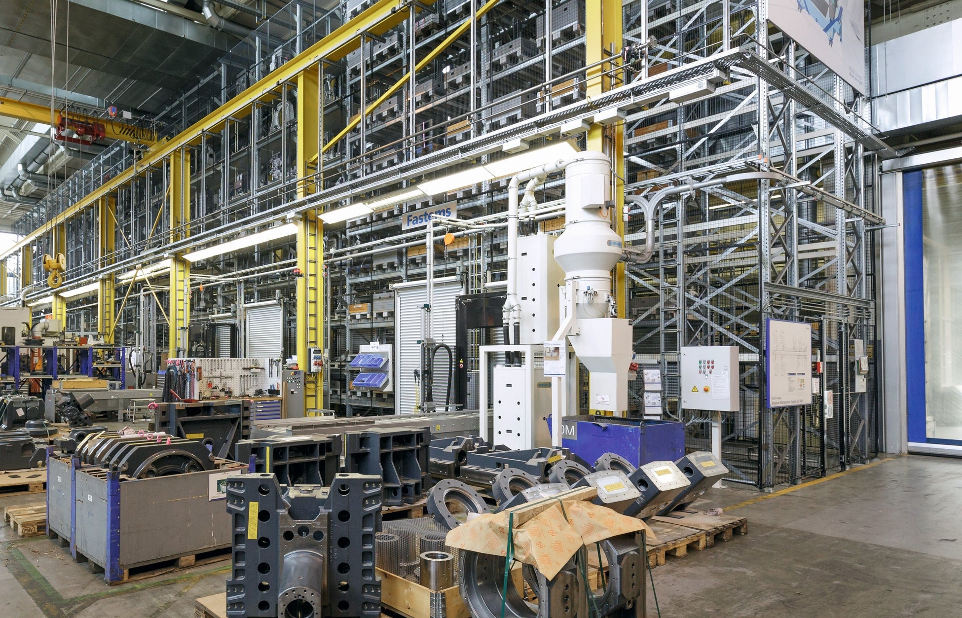 産業用バキュームクリーナーと各作業エリアを配管でつなぎ、工場全体の切粉や粉塵の清掃を効率化するセントラルバキュームソリューション。