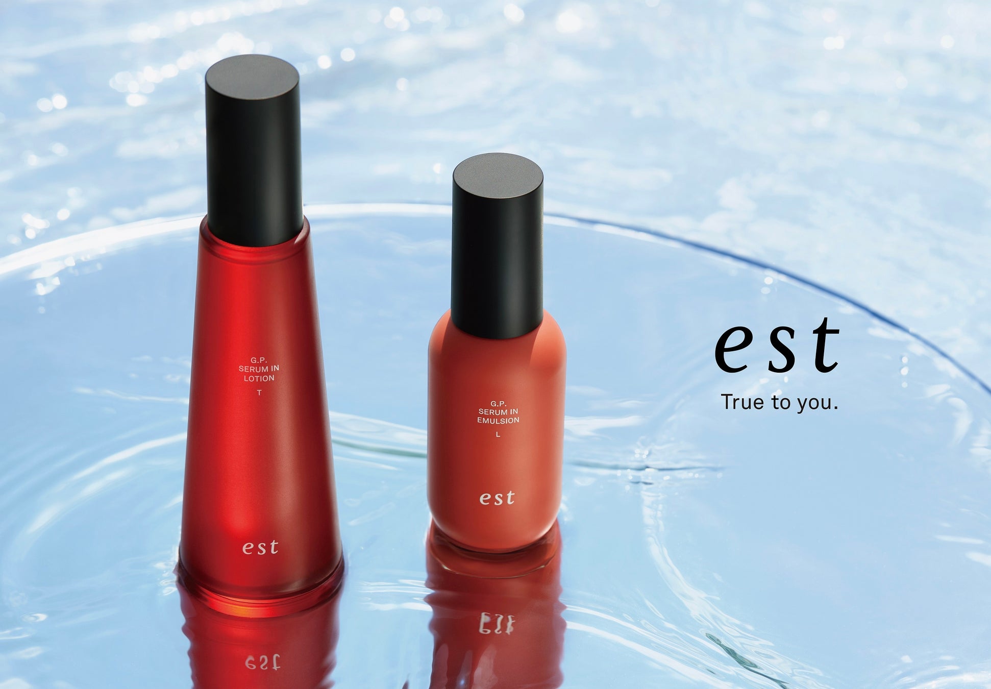 化粧水部門1位(優秀賞)を受賞した「エストG.P. セラムイン ローション」は、エスト最先端の肌知見をもとに処方を開発しており、肌悩みの原因※2に着目したラインナップで、「K/S/T」の3タイプから選ぶことができます。また、佐賀にある花王独自の植物工場「SMART GARDEN」内の「est Plant」で栽培された植物を一つ一つ丁寧に採取した後、不純物を低減する抽出方法で精製したこだわりの高純度※3エキスを含む複合保湿成分を配合しています。さらに使い心地にもこだわり、それぞれのタイプに適した肌なじみの良さを実現しています。 角層深くまで浸透し、潤って浄化されたように澄み渡った肌へ導くエスト渾身の化粧水です。