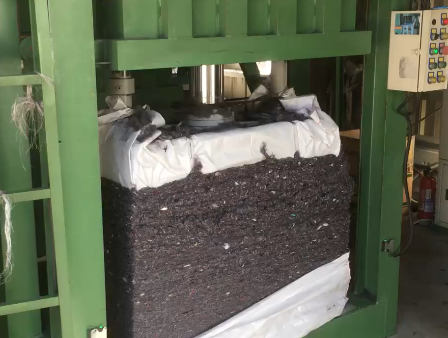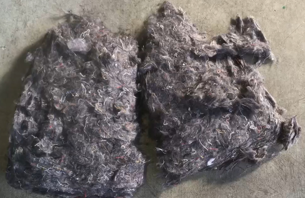 (※図1)専用の機械で、カーテンを「反毛」にし、「フェルト」化した工程。