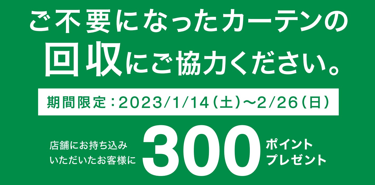 ※ポイントプレゼントは1回限り。カーテンのお持ち込みは何度でも可能です。