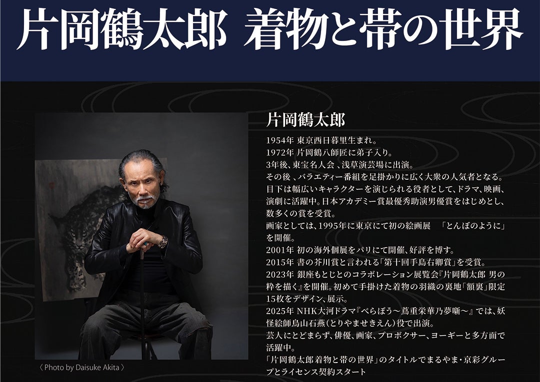 芸人、俳優、画家、プロボクサー、そしてヨーギーと多彩な才能を持つ片岡鶴太郎氏が、新たな芸術表現として「着物と帯の世界」を発表いたします。本プロジェクトは、まるやま・京彩グループとの協力によって、伝統と革新を融合させた特別な着物を生み出す取り組みです。