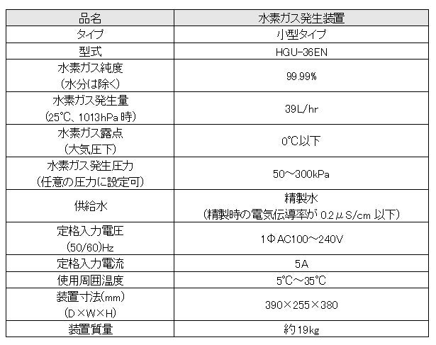 ■ 水素ガス発生装置「HGU-36EN」の主な仕様