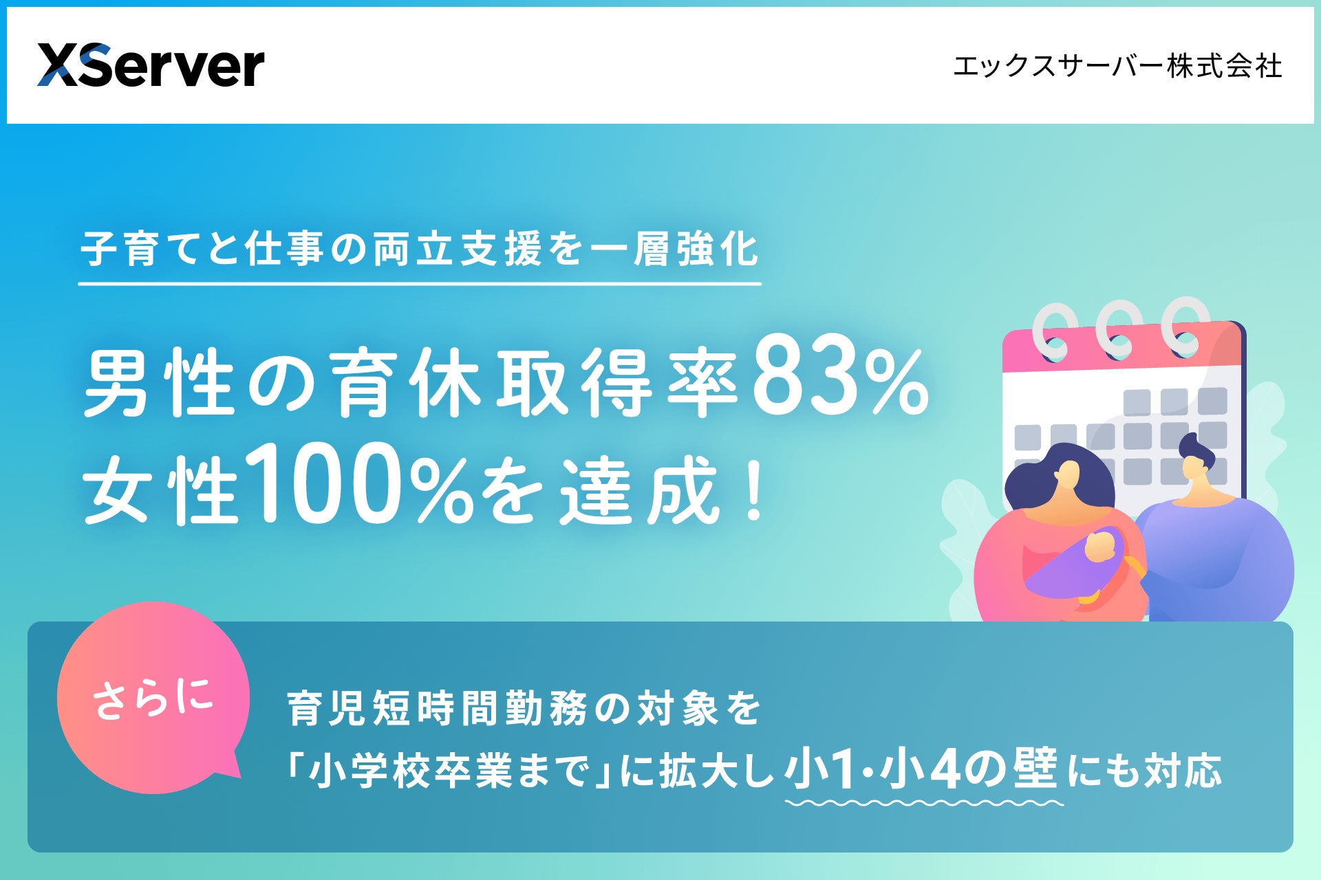 エックスサーバー株式会社、男性の育休取得率83%・女性100%を達成!育児短時間勤務の対象を「小学校卒業まで」に拡大し“小1・小4の壁”にも対応