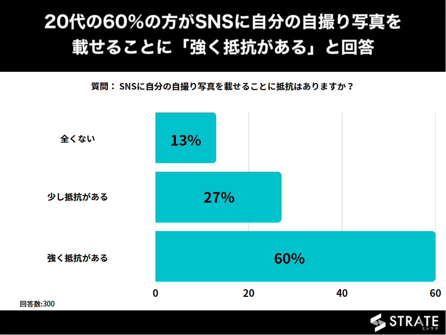 20代の60%の方がSNSに自分の自撮り写真を載せることに「強く抵抗がある」と回答【自撮りに関するアンケート】