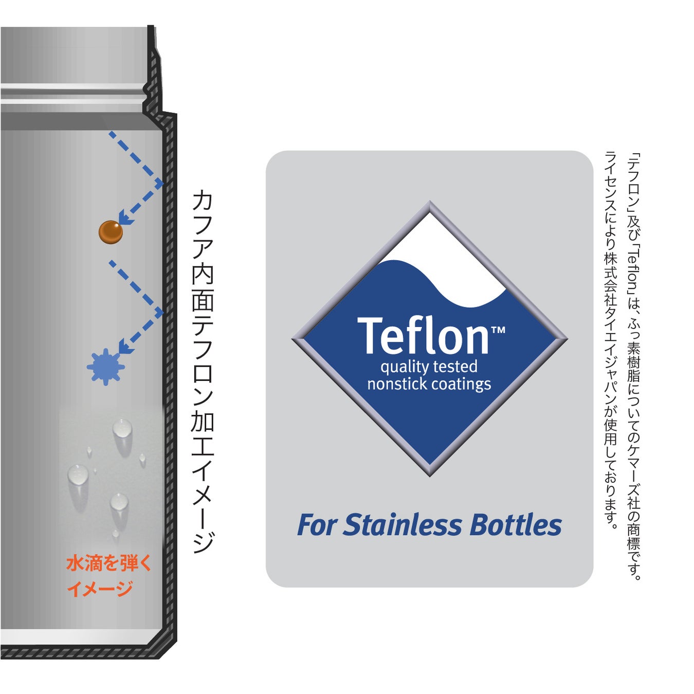 ボトル内面はテフロン™加工を施し、汚れが付きにくく、落ちやすいので衛生的。