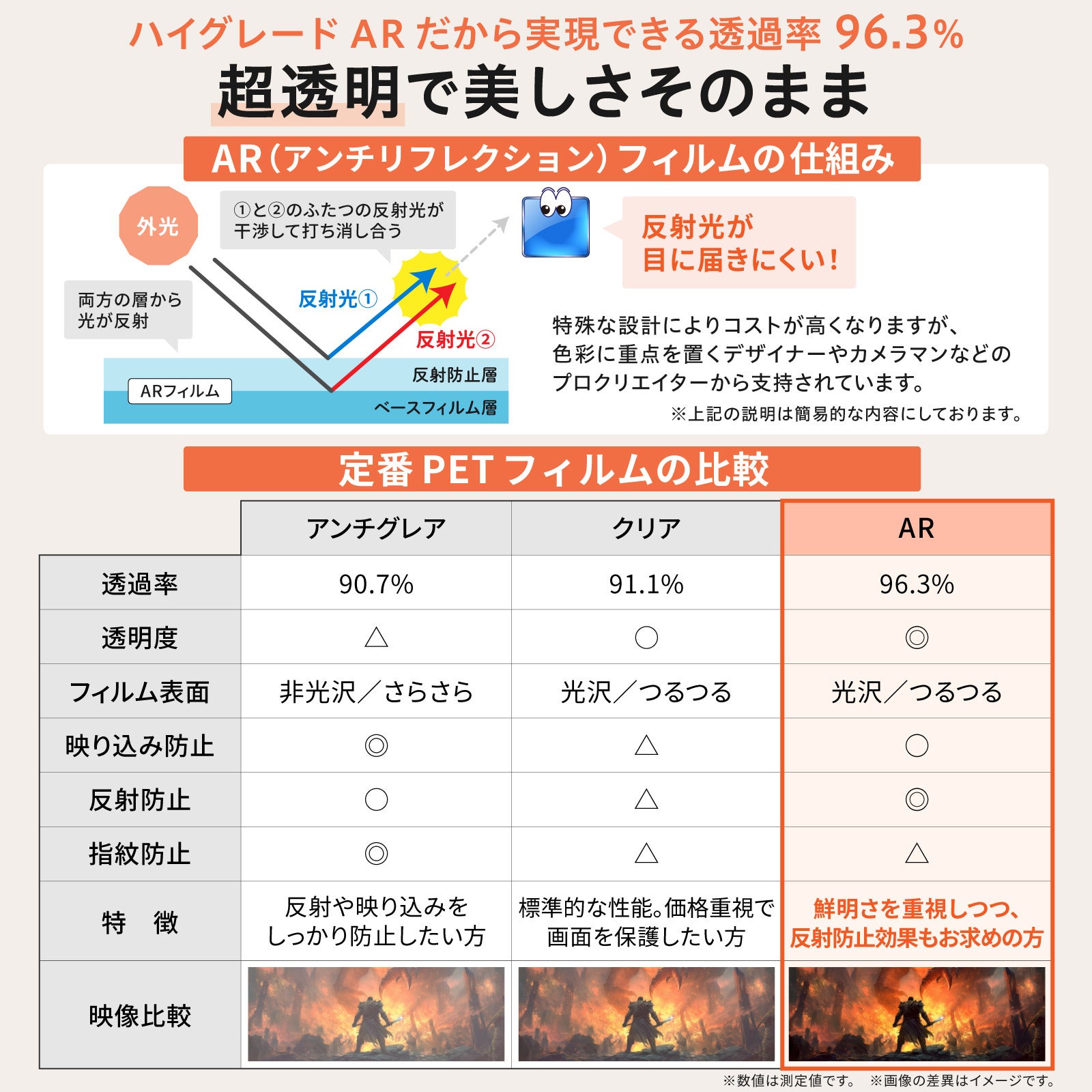 クリアフィルムより鮮明な映像