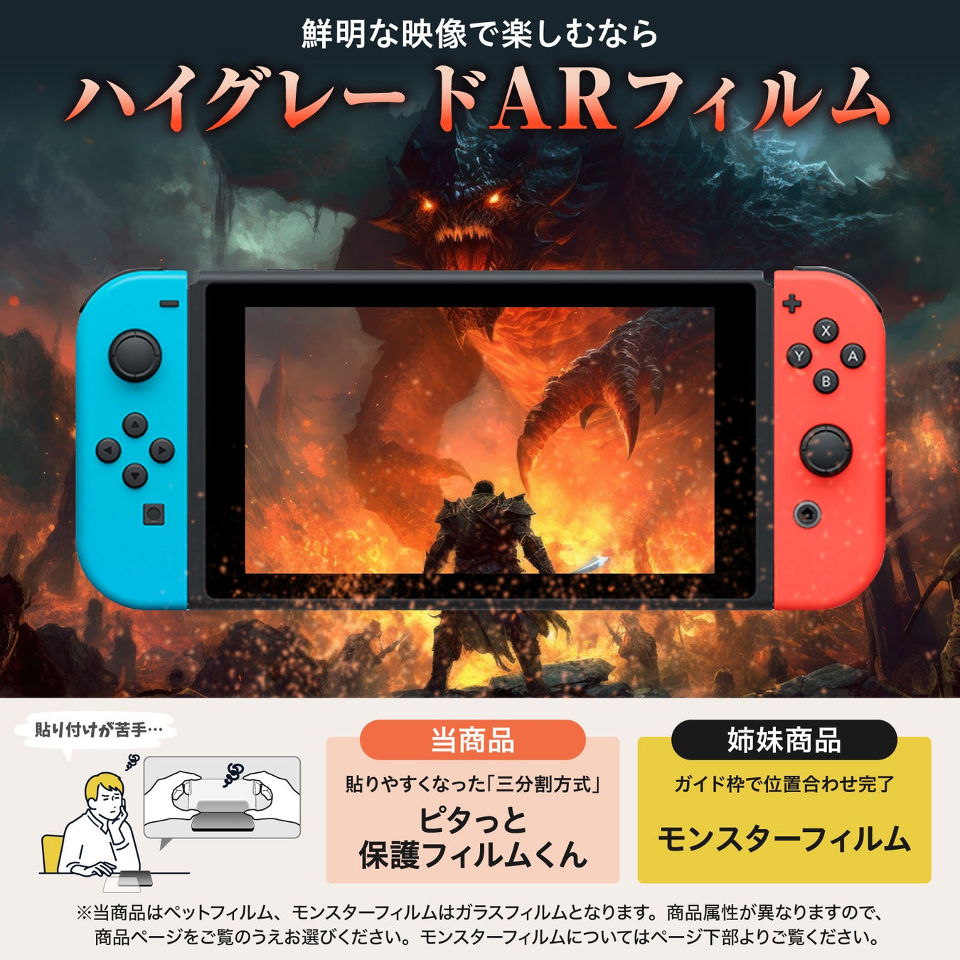 ガラスフィルムをお求めの方は、ベルモンドの「モンスターフィルム Switch用」もご検討ください。